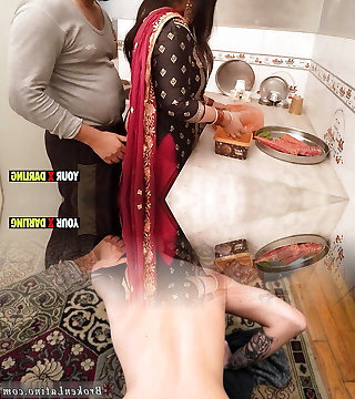 Punjabi Step-mom fucking in the kitchen when she make dinner for stepson