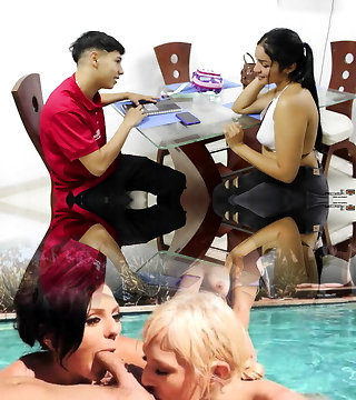 Petite backside fucks her pussy her teacher in interchange for spending the year-Porno in Spanish