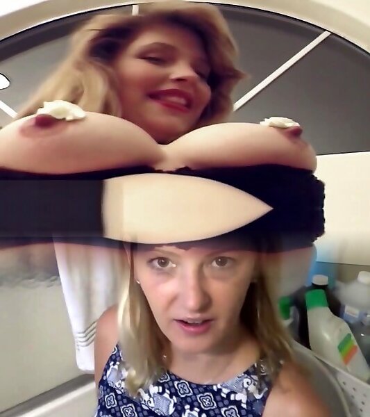 Trashy blond with gigantic mounds Thamara gets toasted and plows 2 beefsticks