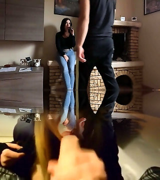 Roommate helps him jizm quickly in her underpants while his parents wait outside