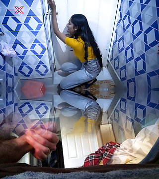 Stepbrother came to his stepsister's guest room to play a fucky-fucky game .